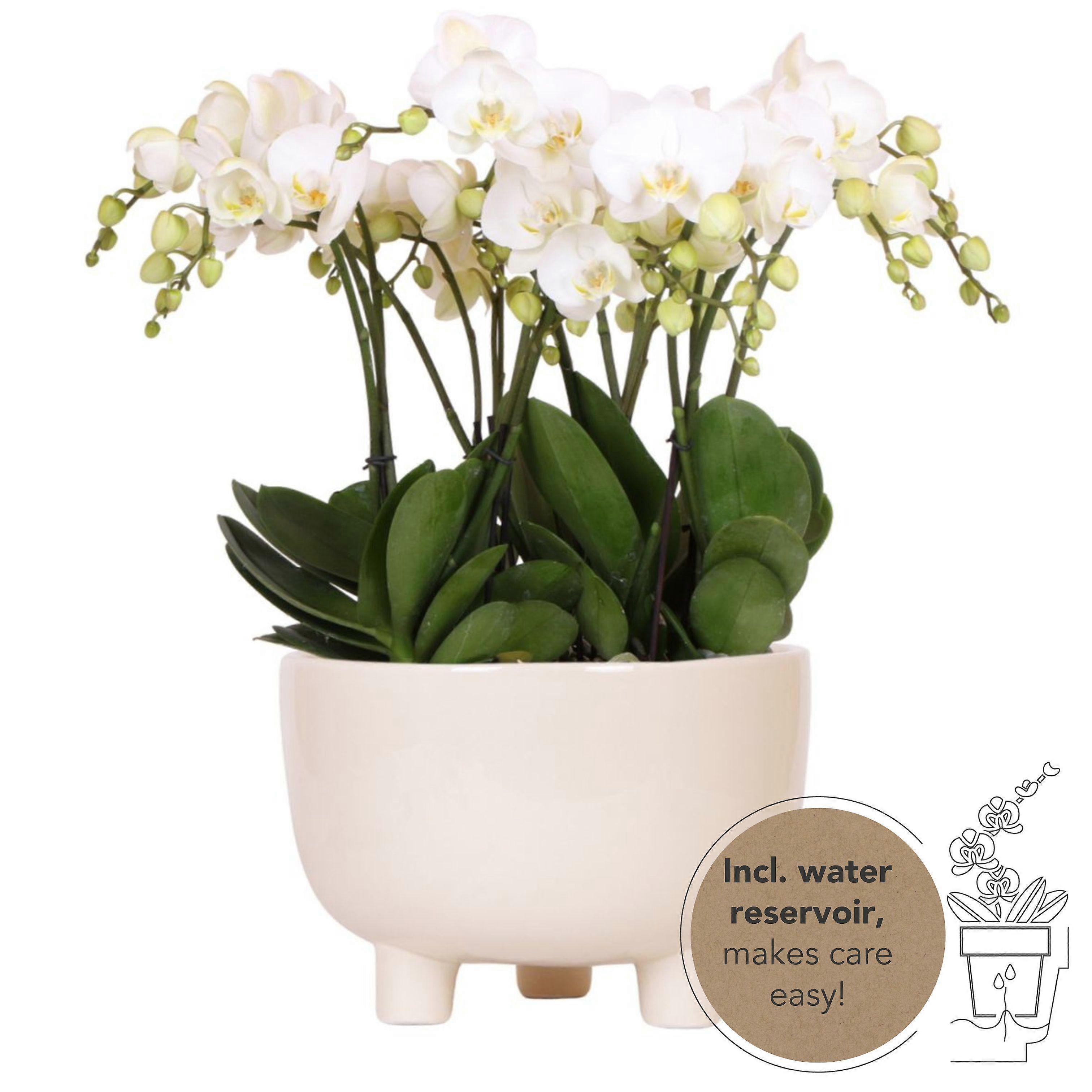 Witte orchideeën plantenset in Gummy dish incl. waterreservoir - 30-50cm - Ø30cm