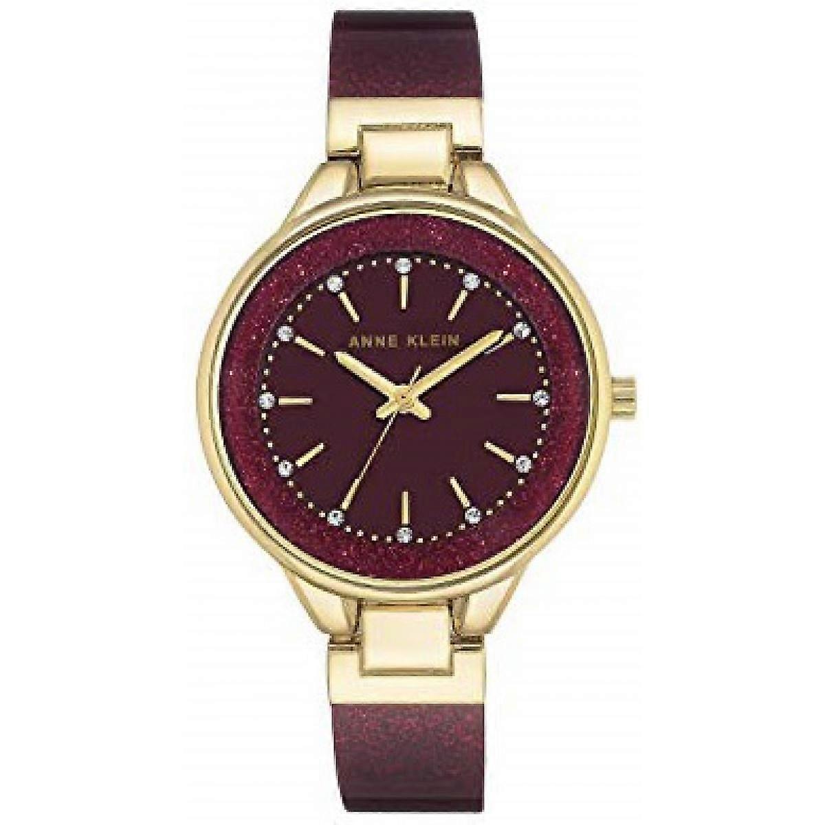 Montre Anne Klein AK-1408BYBY - Cristaux Swarovski Bracelet Résine Rouge Boîtier Aluminium Doré Femme