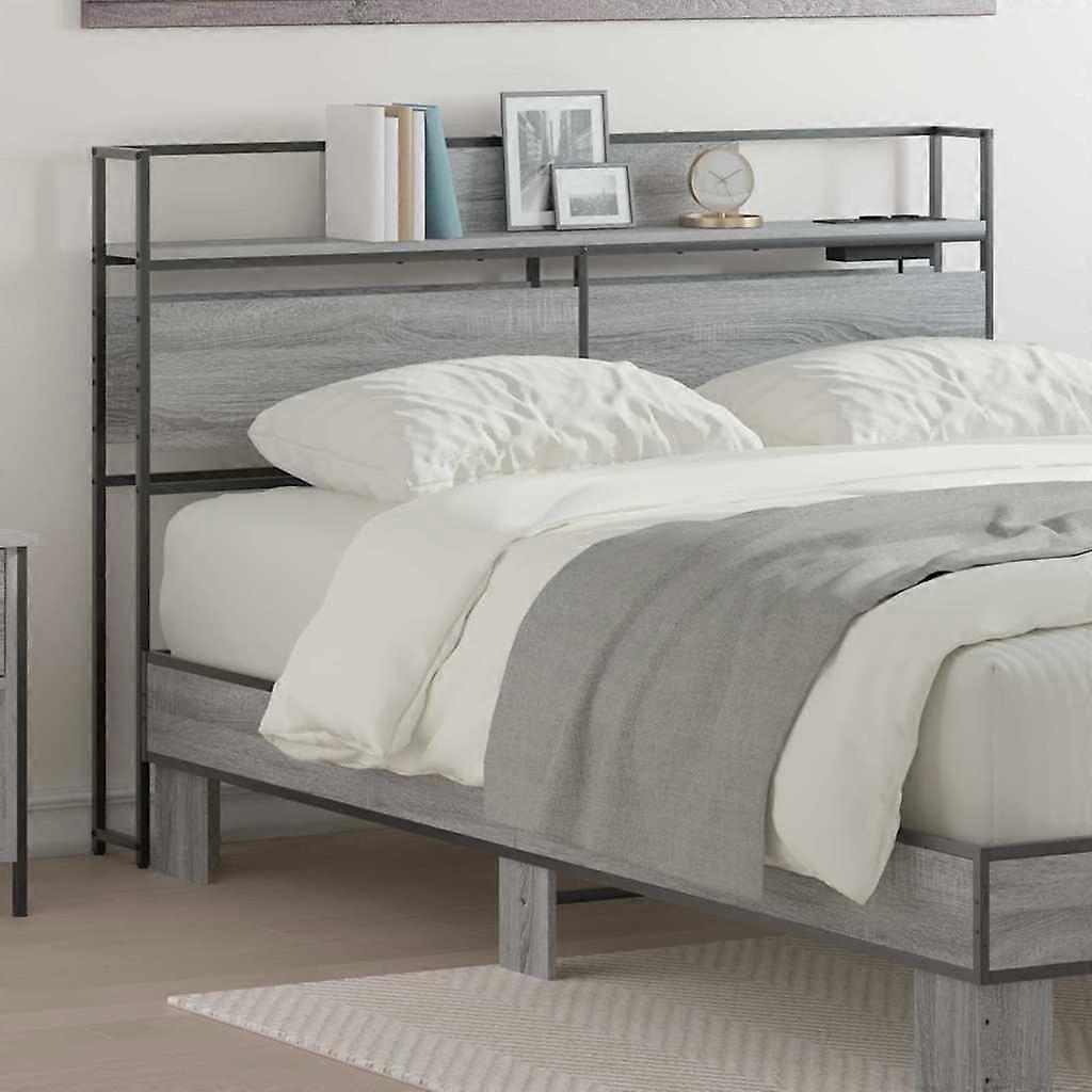 Stauraum-Kopfteil mit Regal Grau Sonoma 120 cm Holzwerkstoff