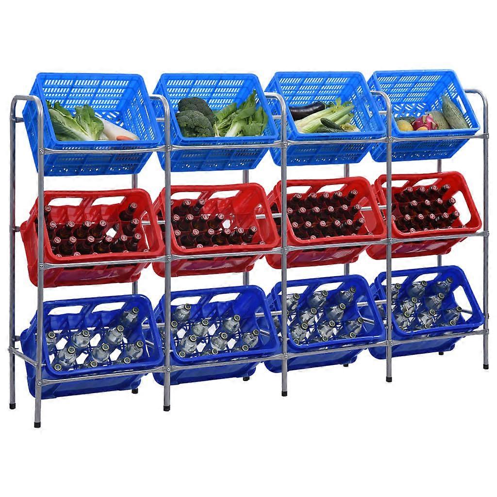 Kistenregal für 12 Kisten Silbern 190x33x116 cm Stahl