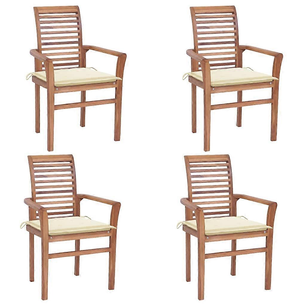 Essstühle 4 Stk. mit Cremeweißen Kissen Massivholz Teak