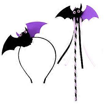 1 Set of Halloween Headband Bat Element Wand Set Halloween Party Bat Cosplay Hairband Wand Kit
