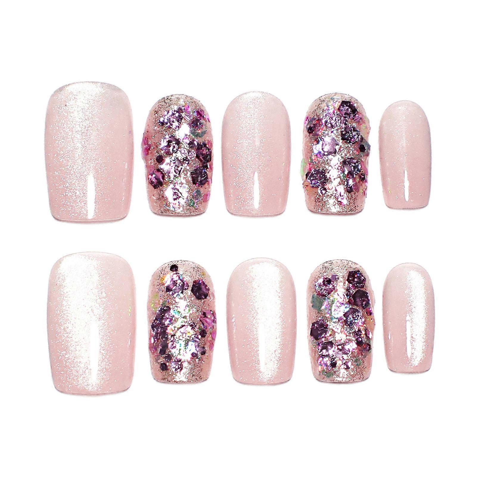 Features : Charming Design: Our sweet pink fake nails with flash sequins feature a stunning pink hue and colorful sequins, perfect for adding a touch of glamour to any outfit or occasion. Durable Quality: Designed with a not-easy-break or split feature, these pink press on nails ensure long-lasting wear, making them ideal for daily use or special events without worry. Comfortable Fit: Enjoy a charming and comfortable manicure experience with our Pink Cat Eyes False Nails. They are lightweight and designed to fit snugly, ensuring all-day wear without discomfort. Versatile Use: Perfect for stage performances, nail salon visits, or casual outings, these reusable long lasting press on nails are a versatile choice for women and girls looking to elevate their style. Thoughtful Gift: Delight your girlfriend, wife, or any special woman in your life with these eye-catching nails. They make a great gift for birthdays, anniversaries, or just because! Specifications: Material: Resin Quantity: 10PCS Size,Thumb(mm),Index Finger(mm),Middle Finger(mm),The Fourth Finger(mm),Little Finger(mm) XS,14,10,11,10,7 S,15,11,12,11,8 M,16,12,13,12,9 Notice: 1.Actual color may be slightly different from the image due to light effect.2.Please allow 1-3cm deviation due to manual measurement. Include: 1 Set * False nails (10pcs included) 10PCS * Jelly glue 1 * Nail rub strip