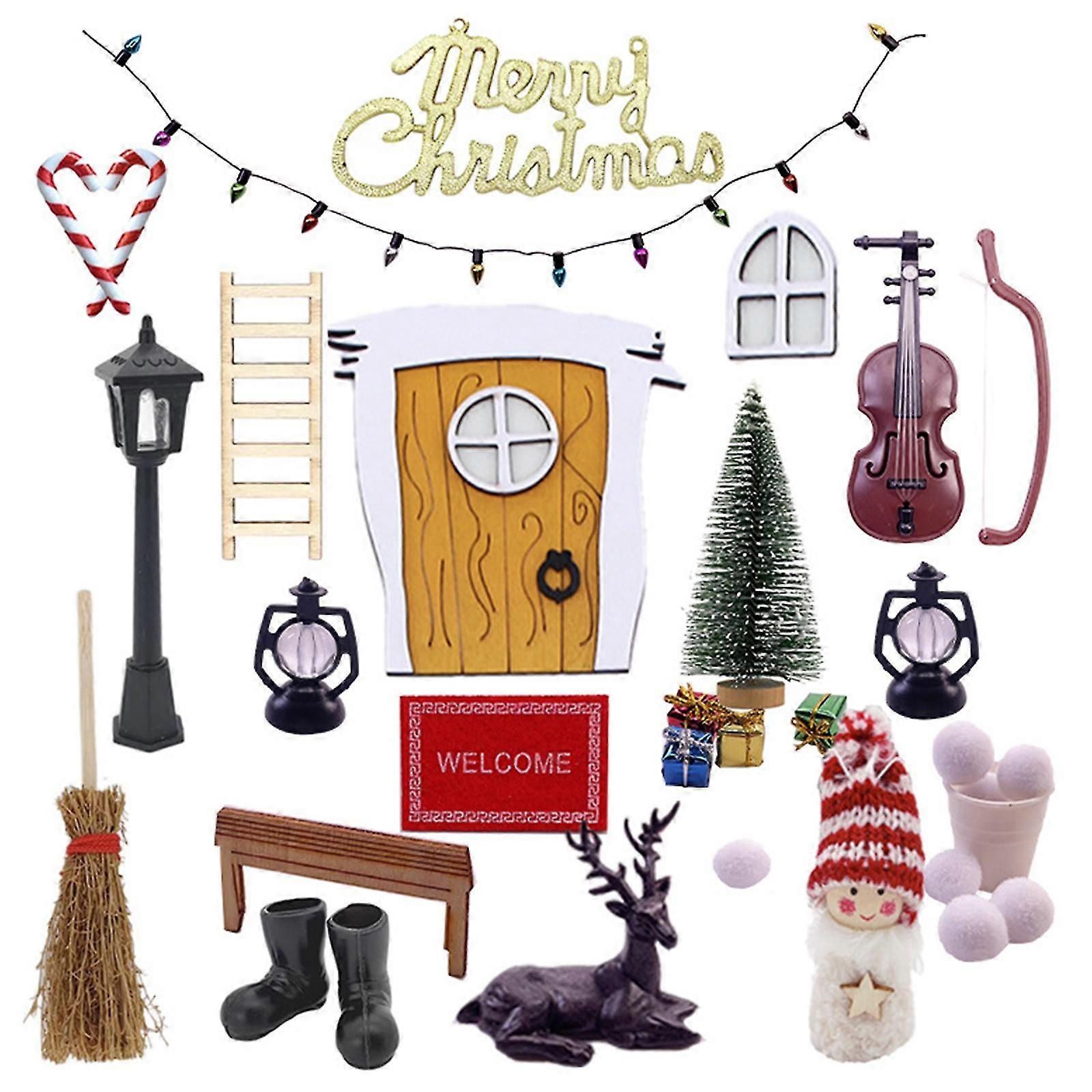 1:12 Dollhouse Christmas Fairy Door Decors - Set With Wreath, Tree, Boots, Broom & More,D,Multicolored
