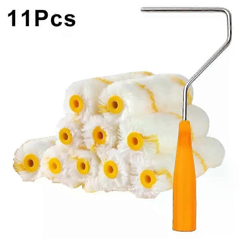 11Pcs New Paint Roller Brush Dense Bristles Latex Paint Roller Brush Tools For Painting Home Wall Cabinets Doors Fences Ceilings High-Quality Bristles :The paint roller brush is equipped with dense Bristles, ensuring a smooth and even application of paint on your surfaces. Versatile Use :This paint roller is perfect for various painting tasks such as painting walls, cabinets, doors, and fences, making it a versatile addition to your toolkit. Durable Material :Originating from Mainland China, this paint roller is made from durable materials, ensuring long-lasting use and reliability. Efficient Painting :The paint roller roller allows for efficient painting, saving you time and effort compared to using other painting methods. Easy to Use :This paint roller is easy to use, making it suitable for both professional painters and DIY enthusiasts. Compact Size :Its compact size allows for easy storage and transport, making it a convenient tool for any painting project. Product name: brush head Colorwhite with yellow Material: chemical fiber Product Includes:10* brush head Features: Anti slip, sturdy and durable, with delicate plush and even brushing Reusable-If you wash it immediately after painting, you can definitely use our roller sleeves multiple times. perfect for painting skirting boards, fascia boards and feature walls. Application: Compatible-suitable for 99% single-spoke mini rollers _x000D_
