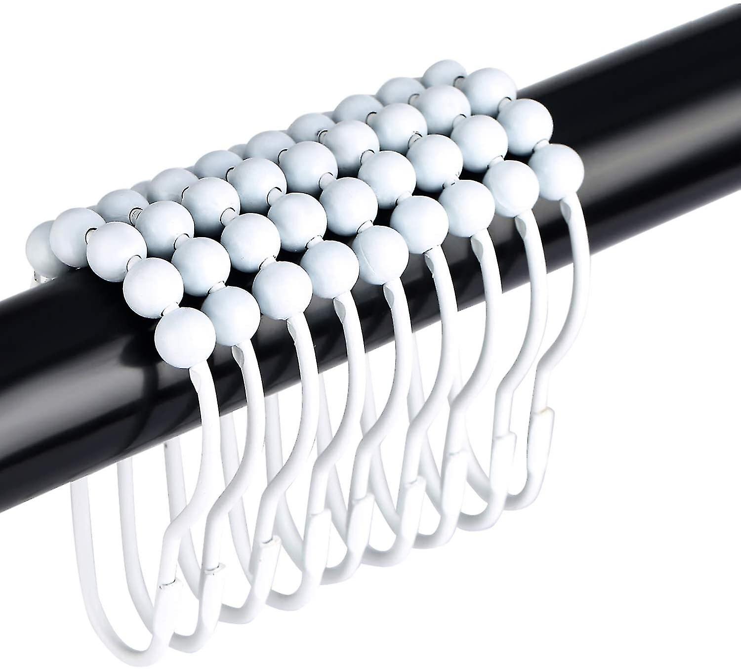 12 Pack Shower Curtain Hooks Stainless Steel With Polished Metal Balls For Bathroom White