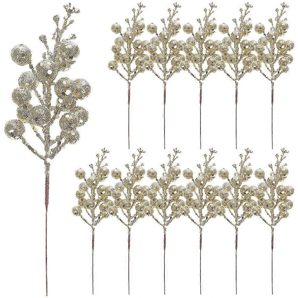 12pcs Xmas Glitter Berries Stems Fake Christmas Picks Glitter Sticks Xmas Party Favors