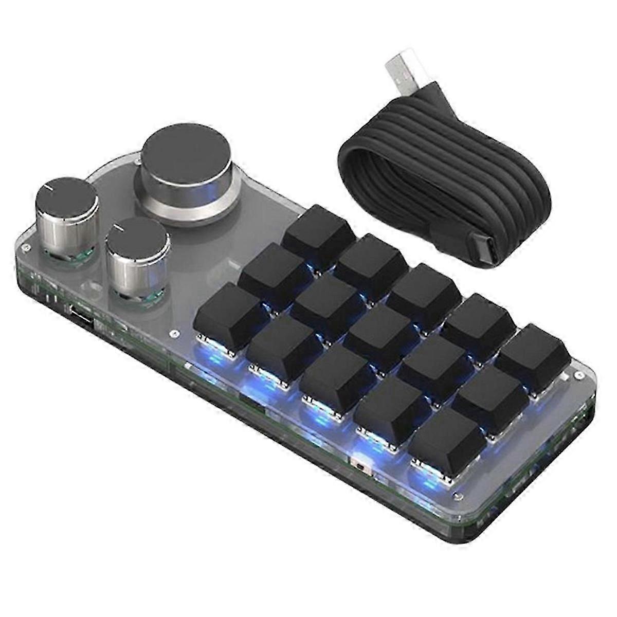 15 Keys 3 Knobs Programmable Keyboard,Blue Switch Swappable Numpad, Gaming Keyboard with Memory Function