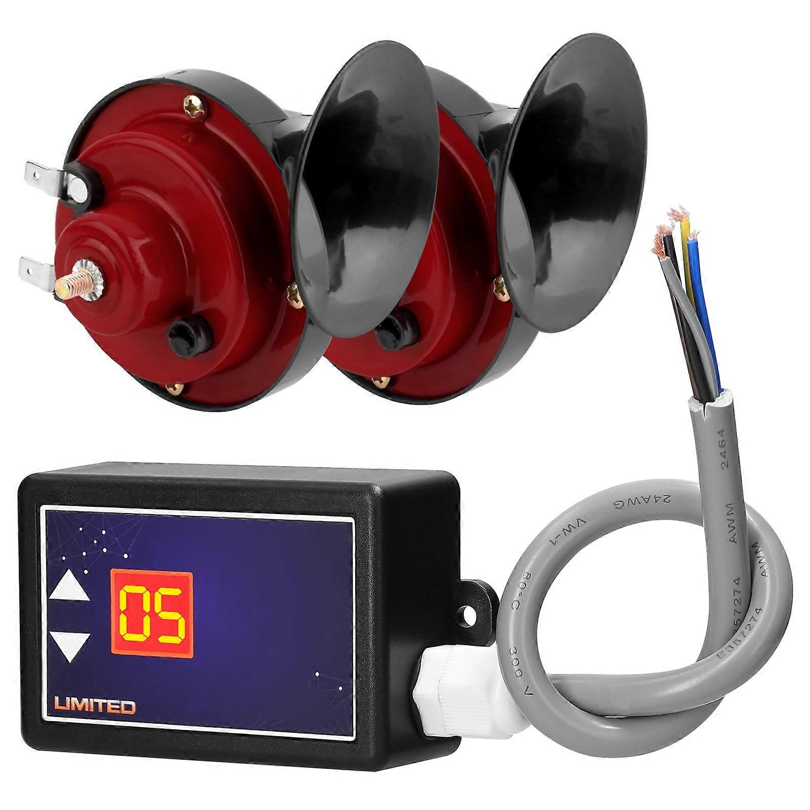 15-Tone Car Horn Controller with Digital Display, Electric Sound Control Unit, Double Tone Horns for Car Truck Marine 12-24V