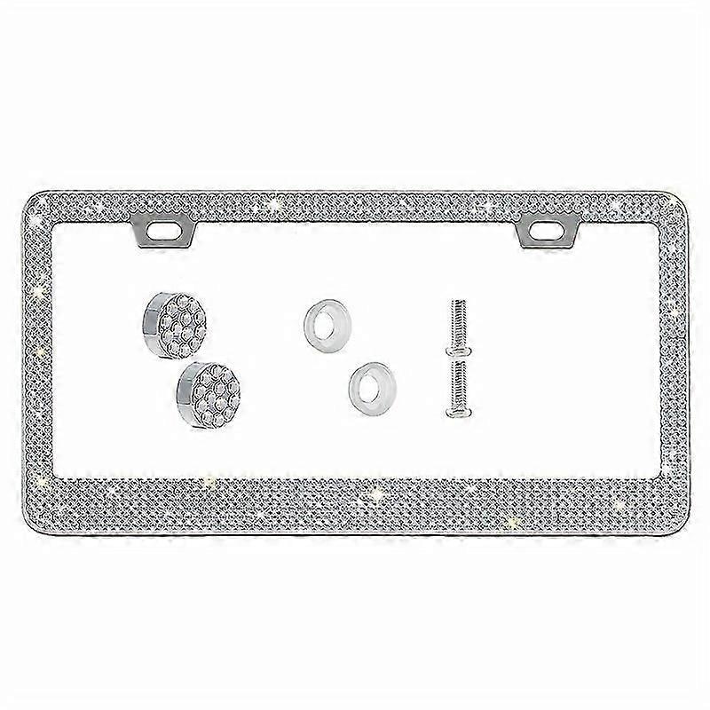 1pc Bling License Plate Frames Car License Plate Frame Handcrafted Stainless Steel Frames-Sparkly Car License Plate Cover With Glitter Crystal Caps