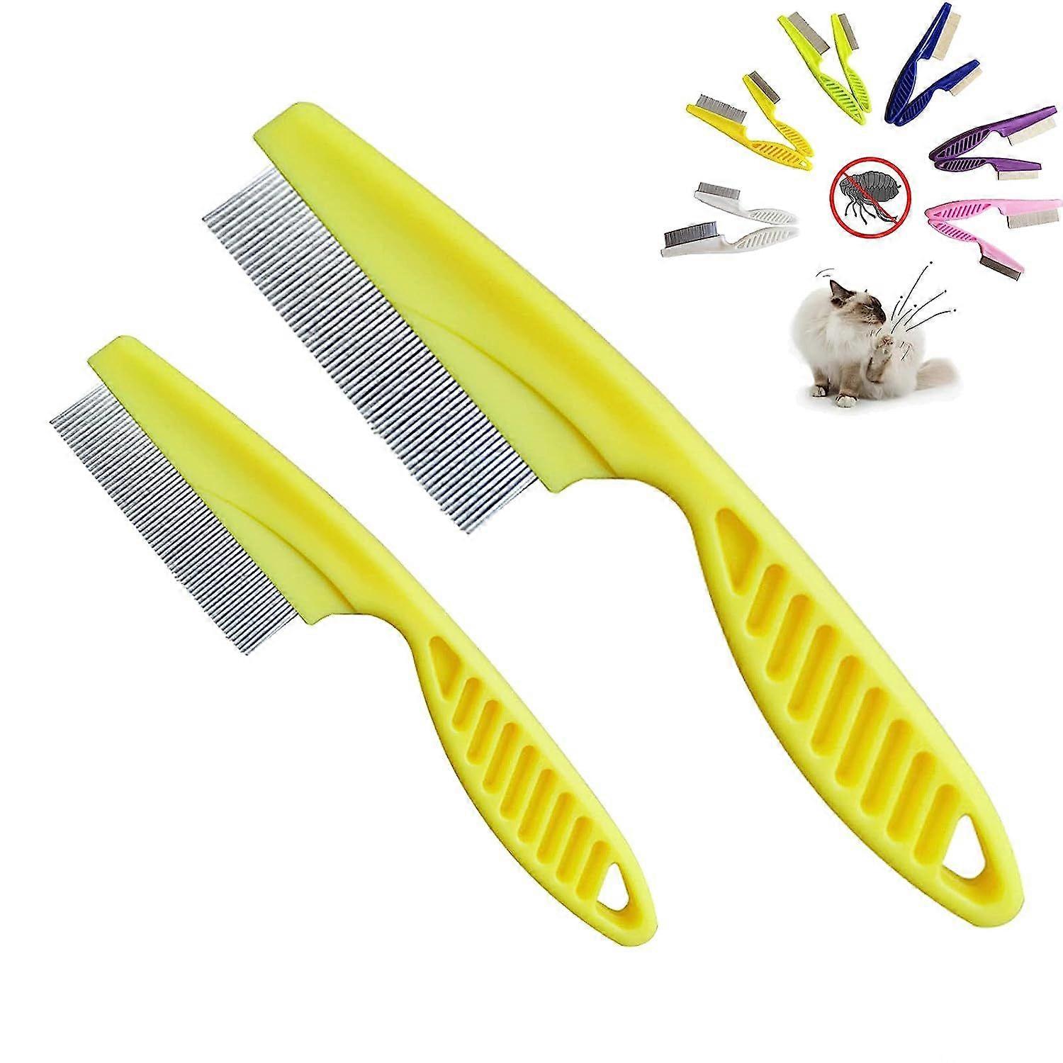 2 Pack Pet Flea Comb for Dogs Cats, Stainless Steel Dog Cat Grooming Comb with Rounded Teeth, Professional Pet Tear Stain Remover, Dog Dematting Comb