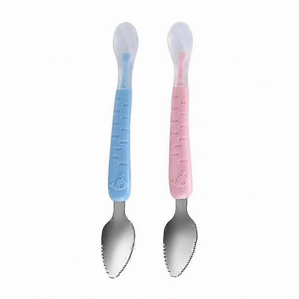 2-Pack Child-Friendly Double-Ended Spoon with Soft Silicone Grips for Fruit Puree and Mealtime Use