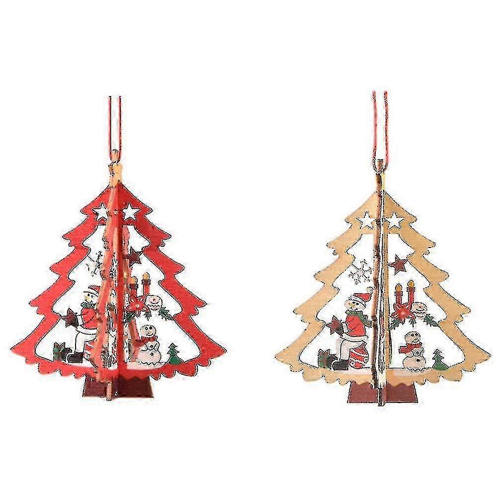 2 Pcs Christmas Tree Wooden Ornaments - Kids Gifts & Festive Home Decor for Xmas Celebrations
