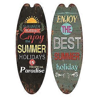 2Pcs String Festival Bar Home Decor Casual Home Decor Vintage Wooden Sign Surfboard Wooden Sign Bea