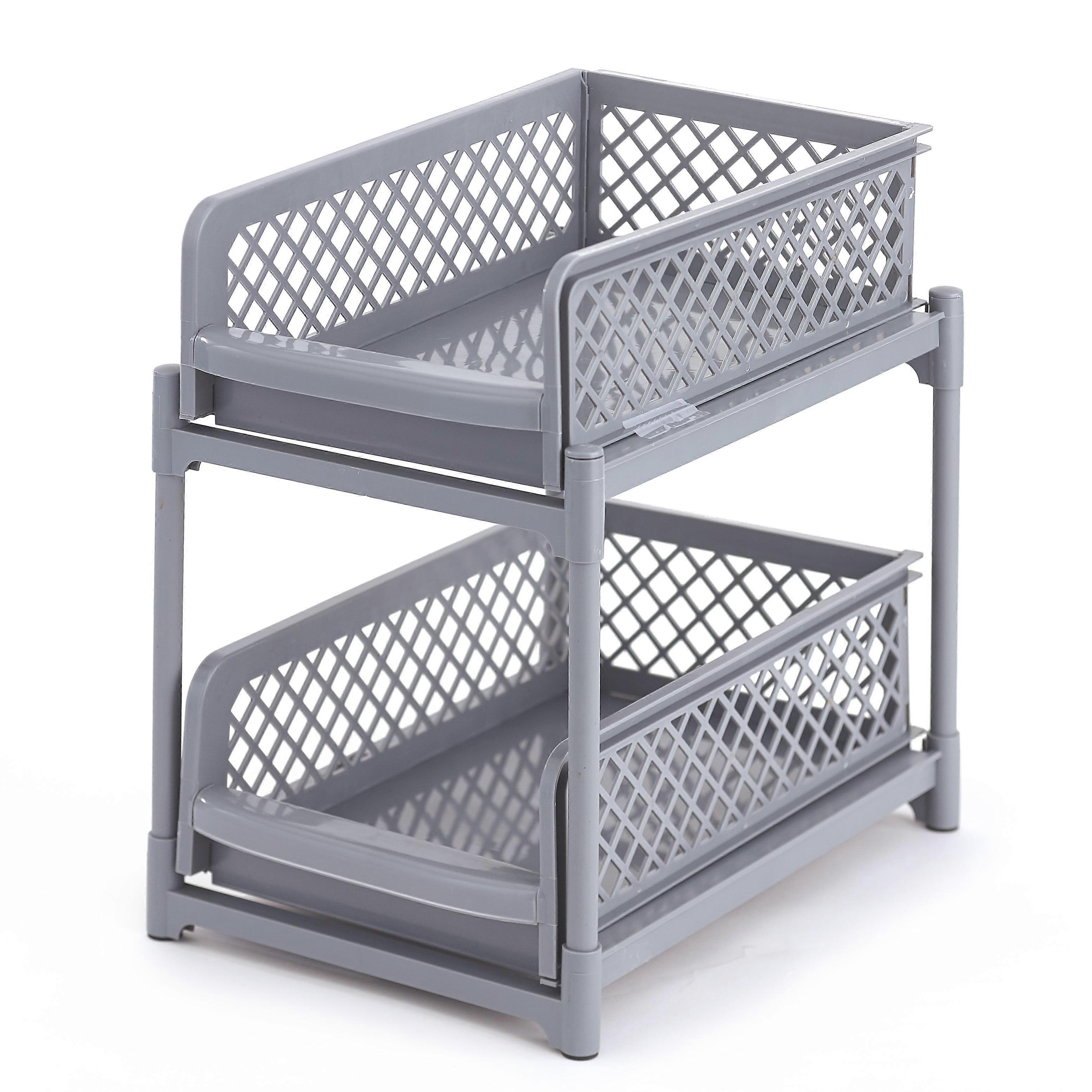 2 Tier Sliding Basket - Under Sink Organizer and Storage – Gray - 9"