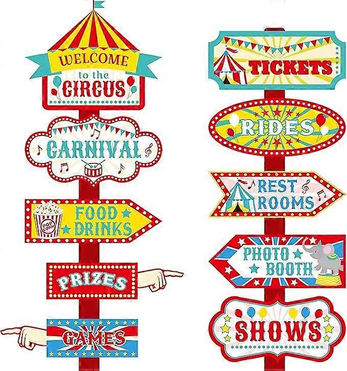 20 Pieces Circus Carnival Party Directional Signs for Themed Party Decoration