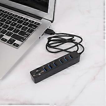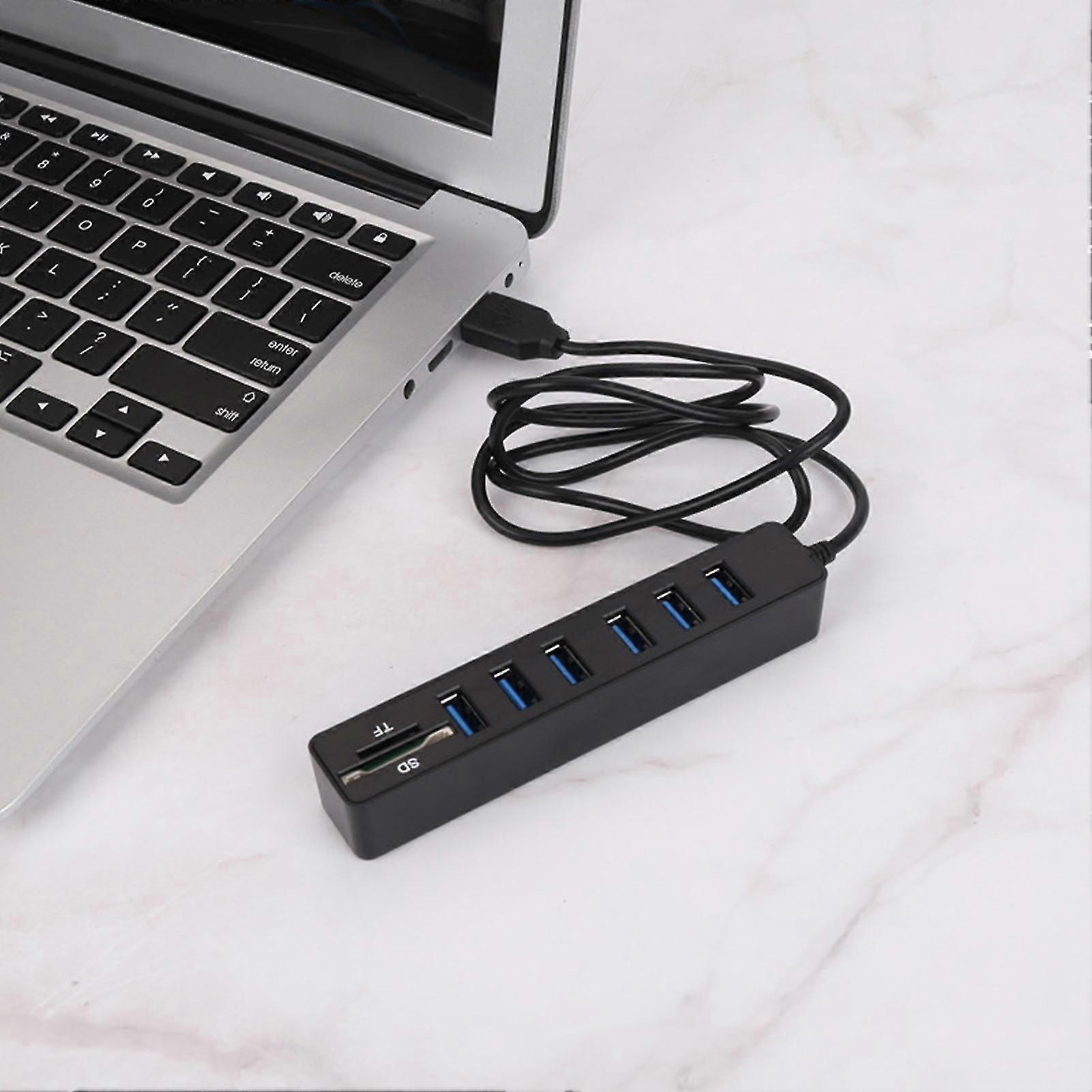 2025 USB Hub with Long Cable 6 Ports Big Expansion Plug And Play Hot Swappable Data Transfer ABS Card Reader SD/TF Data Hub for Laptop