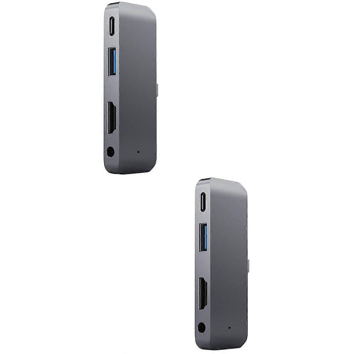 2pcs USB Adapter with USB-C Type C PD Charging 4K USB 3.0 3.5mm Headphones for Laptop WC7366 (Grey)
