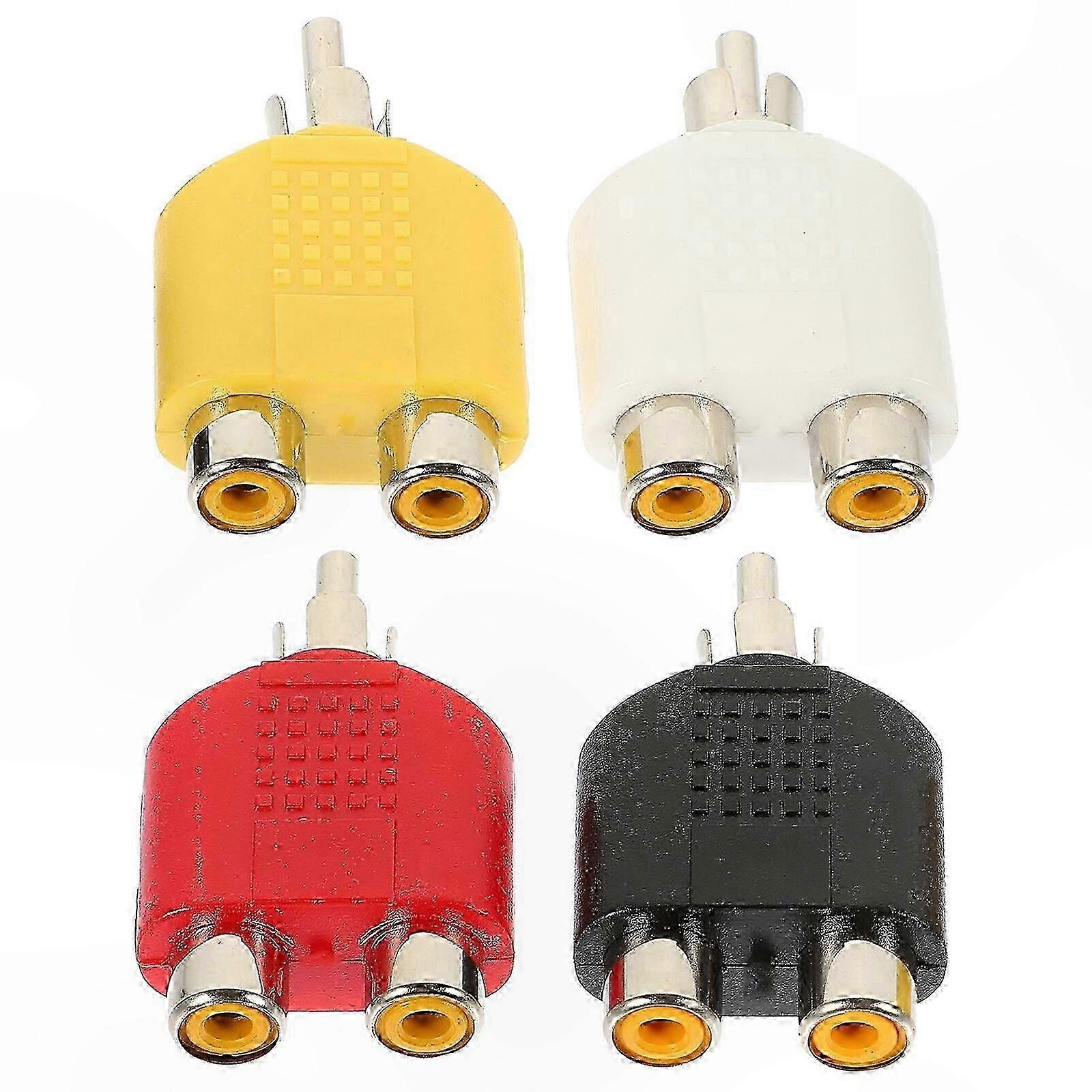 Description Looking for a professional and practical RCA splitter? This o splitter is designed to meet your needs. Constructed from zinc alloy and ABS materials, it offers durability and long-lasting performance. Precision craftsmanship ensures reliability and functionality. Features - Color: Assorted - Material: Zinc alloy, ABS - Size: 4.40 x 2.60 x 1.30 cm / 1.73 x 1.02 x 0.51 in - Wide Compatibility: Ideal for o video AV TV cable conversion, compatible with various devices - Convenient Design: Double female to single male configuration allows easy connection of multiple devices - Durable Construction: Made from zinc alloy and ABS for stable, long-term use - Signal Conversion: Converts o signal output interfaces; enables transmission of o signals from cameras, power amplifiers, DVDs, VCDs, and video recorders to multiple TVs or stereos via o cables - Ideal Replacement: A reliable RCA splitter to replace damaged or worn-out models Packing List 4 x Splitters
