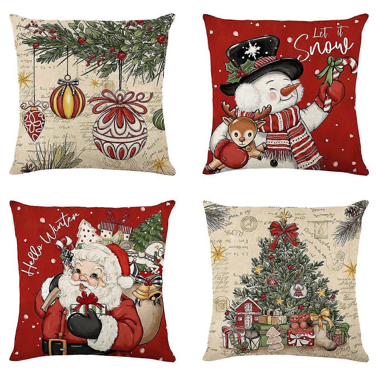 4Pcs Christmas Linen Cushions Cover with Festival Reindeers for Couch and Car
