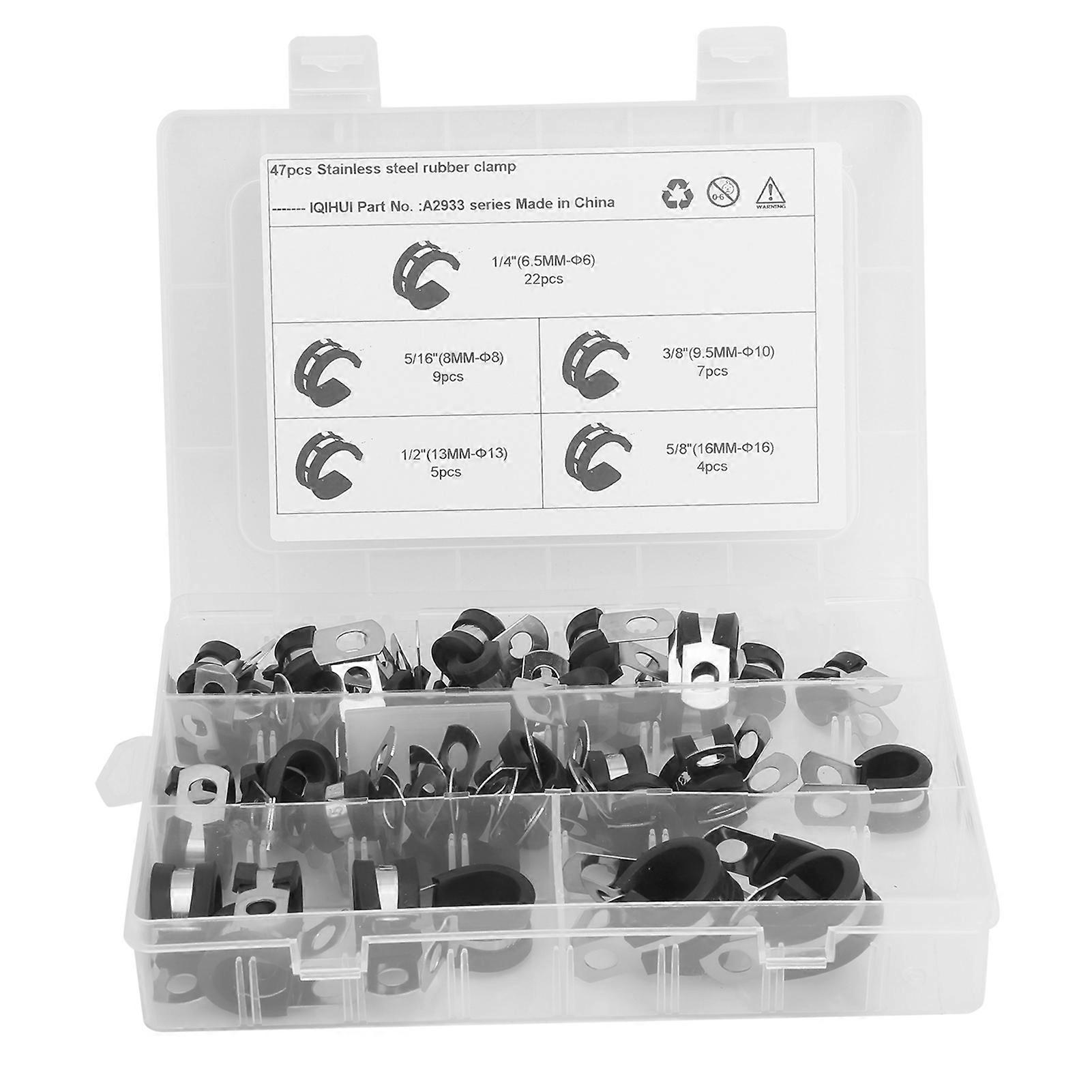 47pcs Cable Clamps Set R Shape 304 Stainless Steel and Rubber Cushion Assortment Kit