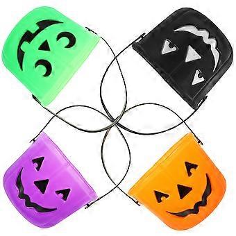 4pcs Portable Halloween Pumpkin Bucket Colored Candy Containers With Handle for Trick Treating, Parties, Storing Sweets & Treasures, Random Color