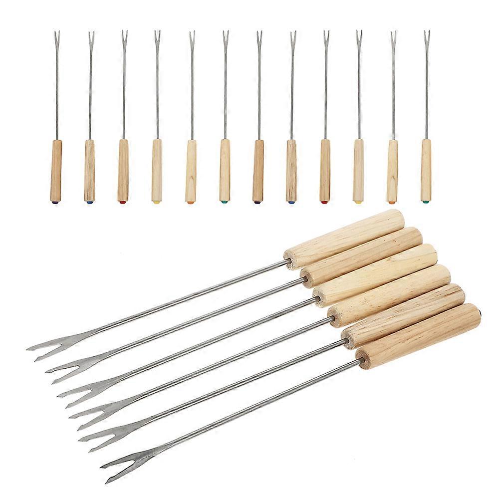 54 Pcs Stainless Steel Fondue Forks With Wooden Handle For Camping BBQ Parties And Gatherings In Assorted Color Featuring Cheese Dipping