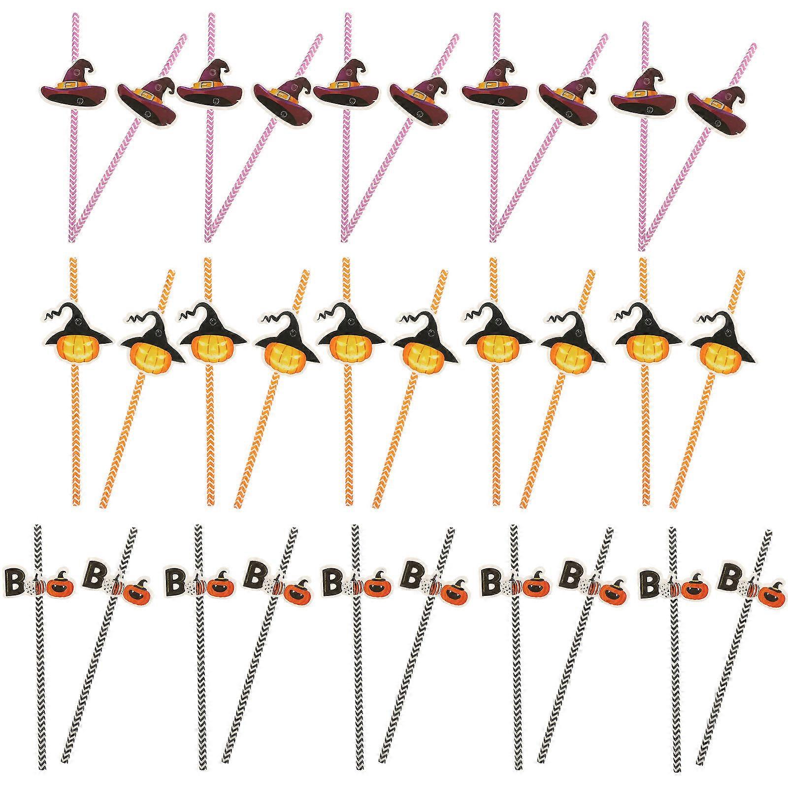 72Pcs Halloween Party Paper Straws Decorative Drinking Straws Assorted Color Suitable For Cake Decoration And Beverage Drinking