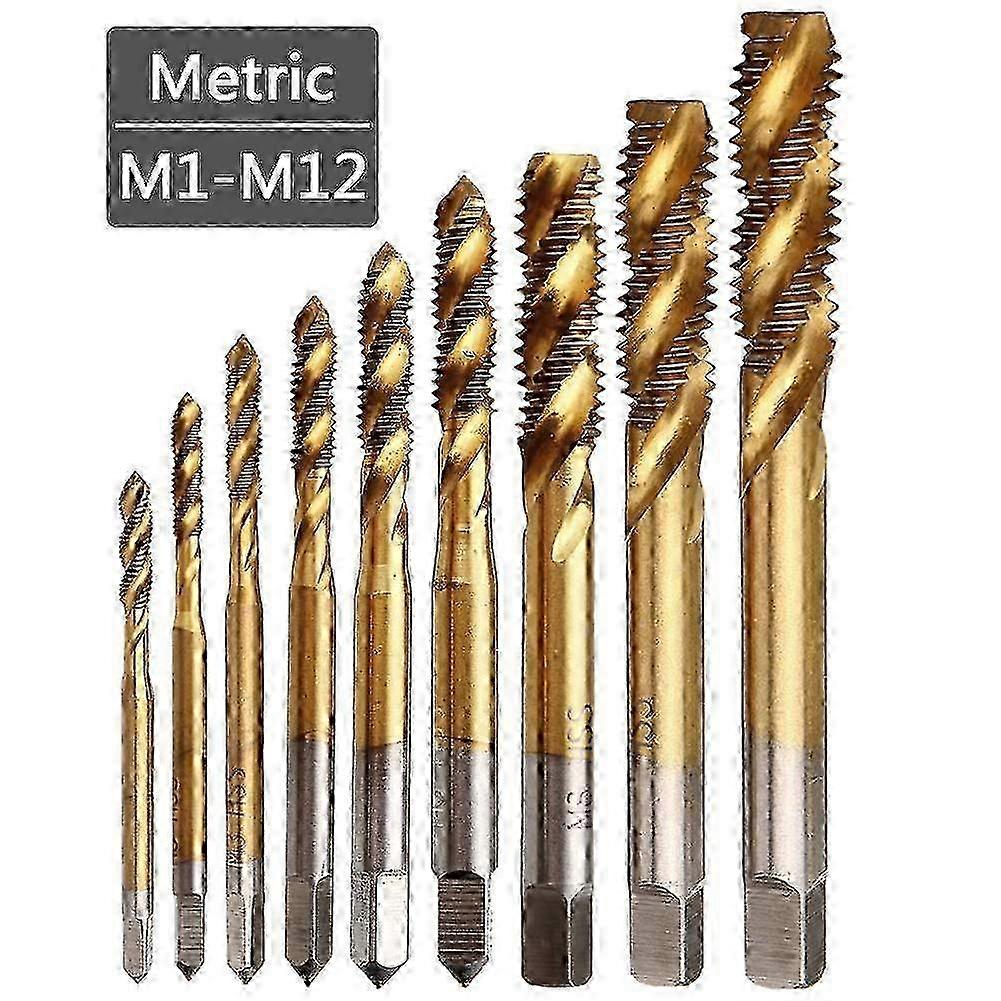 9pcs Machine Screw Tap Set Titanium Spiral Flute Drill M2 M2.5 M3 M4 M5 M6 M8 M10 M12 Thread Tapping Tool 2025