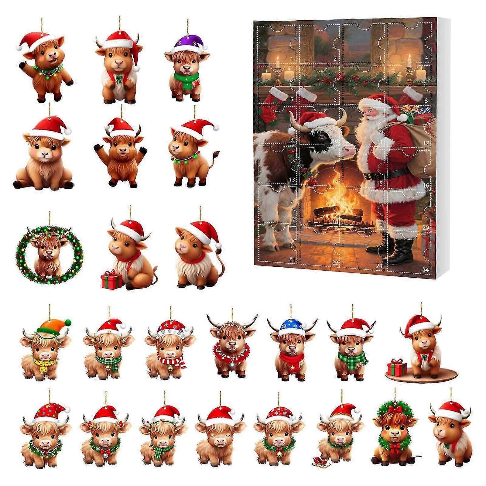 Advent Calendar for Christmas Highland Cow Festive Countdown Decor
