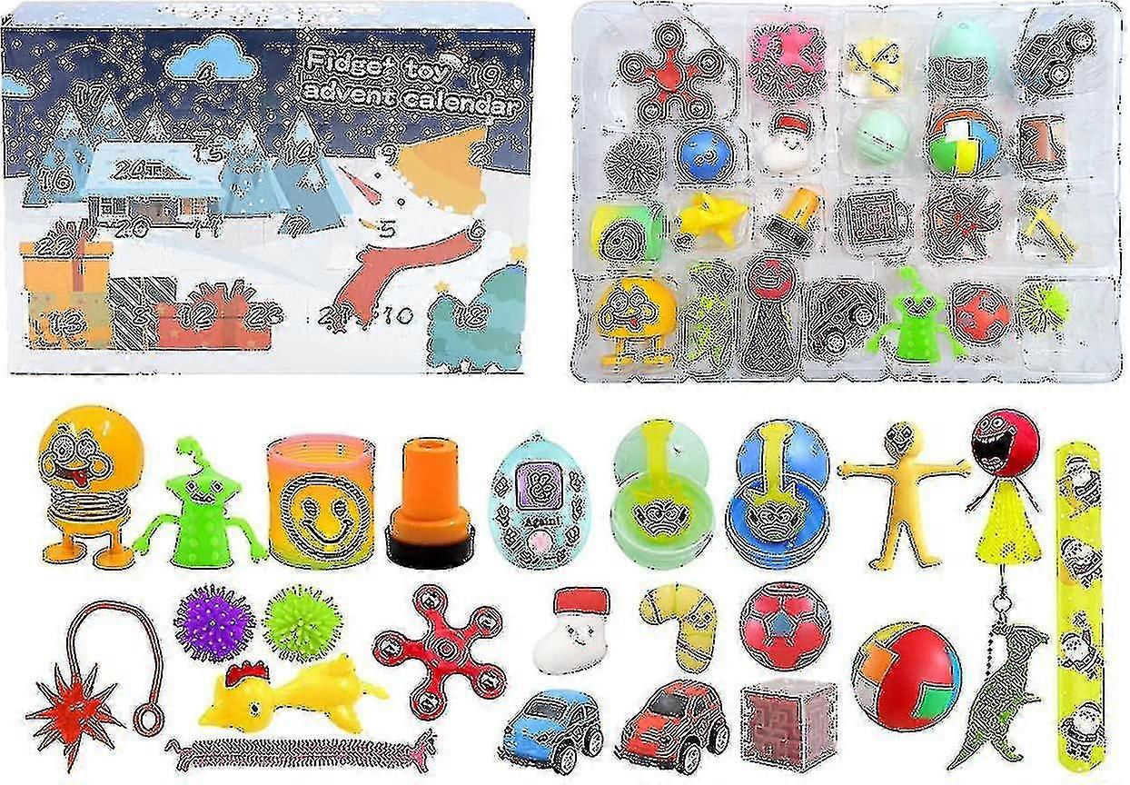 The advent calendar toy Safe and Durable: Nontoxic, tasteless silicone will not harm people or pets. (no chew toy) Bright colors and pleasant noises soothe or distract every child Reusable and washable. Suitable for adults and adults and children over 3 years old.The countdown to Christmas is an exciting time for children. One way to display the calendar is to increase holiday expectations. The new calendar toy hides many surprises.A Perfect Way to Relieve Stress - Small Toys to Hold in the Palm of Your Hand. It"s A Fun Way to Keep the Brain Focused and The Hands BusyThe advent calendar is a fun way for children to count down the days before Christmas and get some surprises every day. The ideal Christmas gift for children 3 years and older.Great Design for Anxiety, Focusing, ADHD, ADD, Autism, OCD, Quitting Bad Habits, etc. Helps Relieve Stress. Get It and Share It with Your Friends for A Fun Birthday or at Party TimeKeep your children away from electronic products. These toys can reduce stress, promote blood circulation in the hands, and practice numbers and counting skills with your childrenConvenient to Carry: Most of the toys are pocket-sized and portable, so the irritable toy bag is very suitable for offices, families, special education classrooms, physical therapy rooms, etcYou can imagine and create a unique Christmas advent calendar; in addition to fun-filled games and hands-on activities, children will also wait for Christmas throughout December to explore and cultivate their patience and creativity.About Shipping: All items will be shipped within 3 business days after the payment is received. Most times you will receive them within 8-12 days then. The specific delivery time is depend on circumstances.Any questions, please feel free to contact usDuring the shopping process, if you have any questions, please feel free to consult us, we will reply you within 24 hours, wish you a happy shoppingThanks for your cooperation and we'll make you feel satisfied.