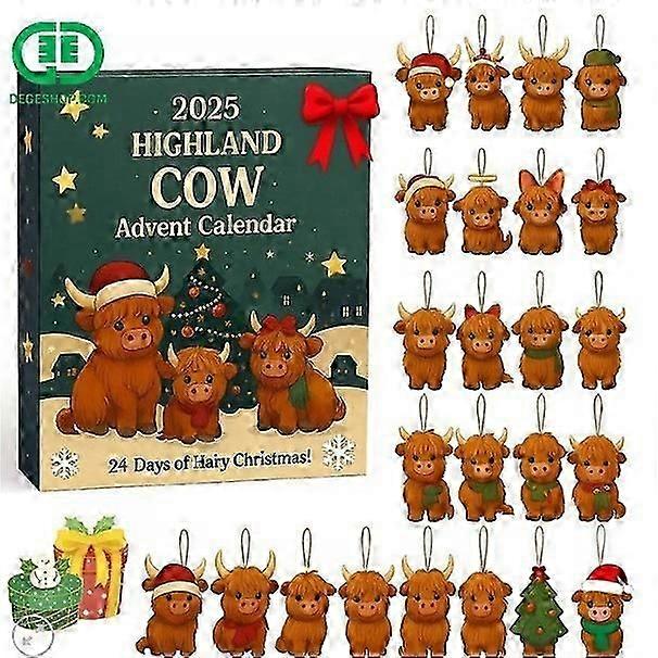 Highland Cow Advent Calendar 2025, 24 Unique 3D Ornaments, 24-Day Surprise Christmas Advent Countdown, For Christmas Tree Home Decoration