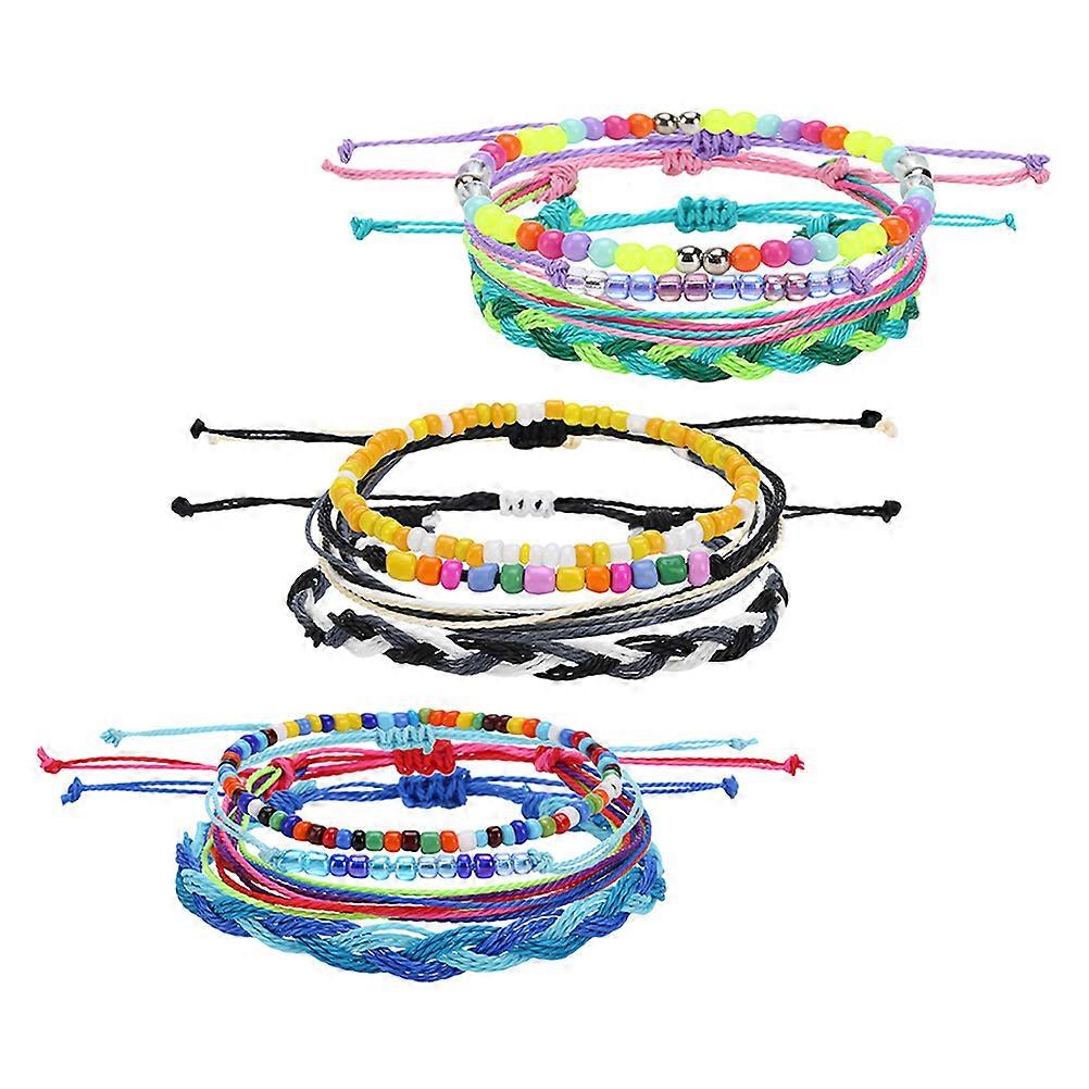 Assorted Color Wax Thread Bracelet for Women Wristlet 3Pcs Pack
