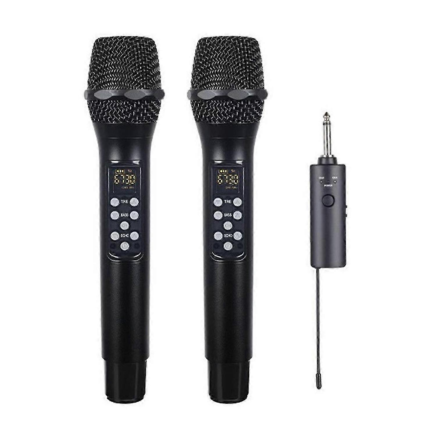 Wireless Microphone Dual Channel UHF Handheld Dynamic Mic Set Receiver with Rechargeable Receiver fo