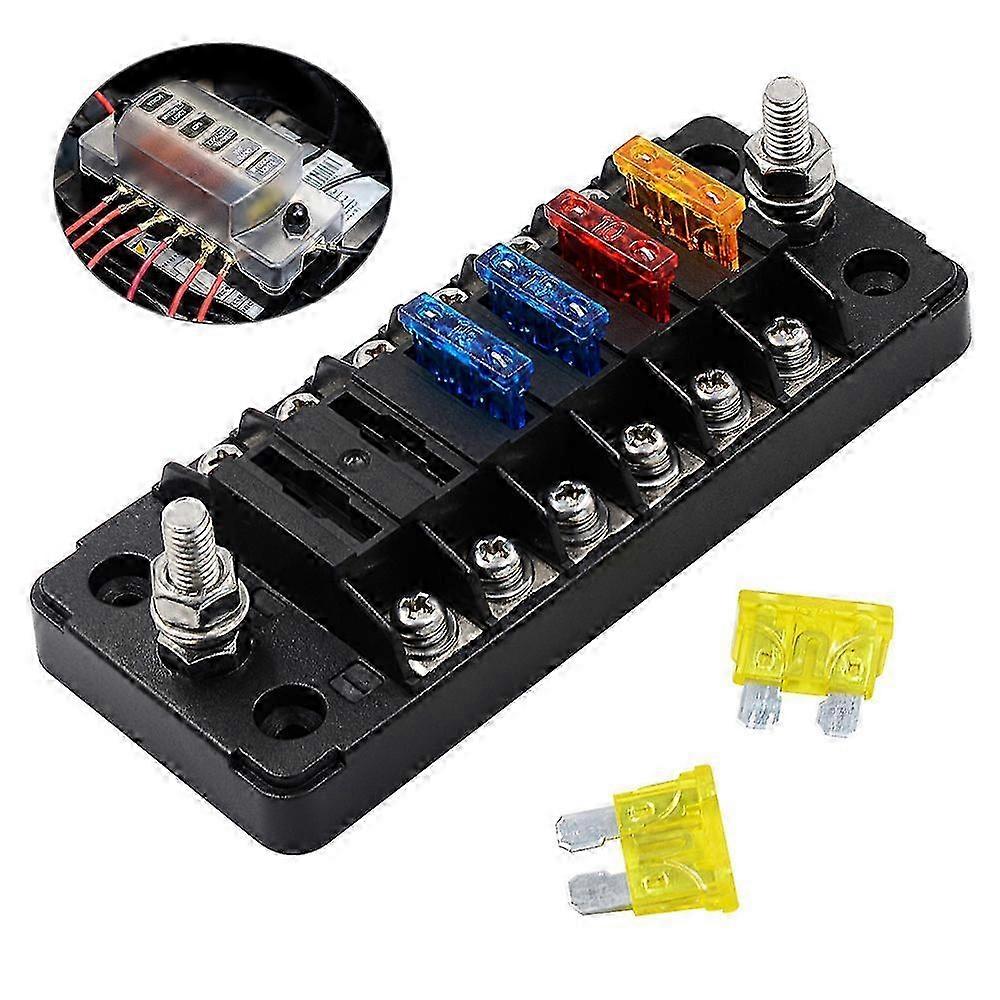 Car long 6-way independent positive and negative fuse box with 12 fuse pieces For Van Car Truck SUV RV Bus Boat Yacht--