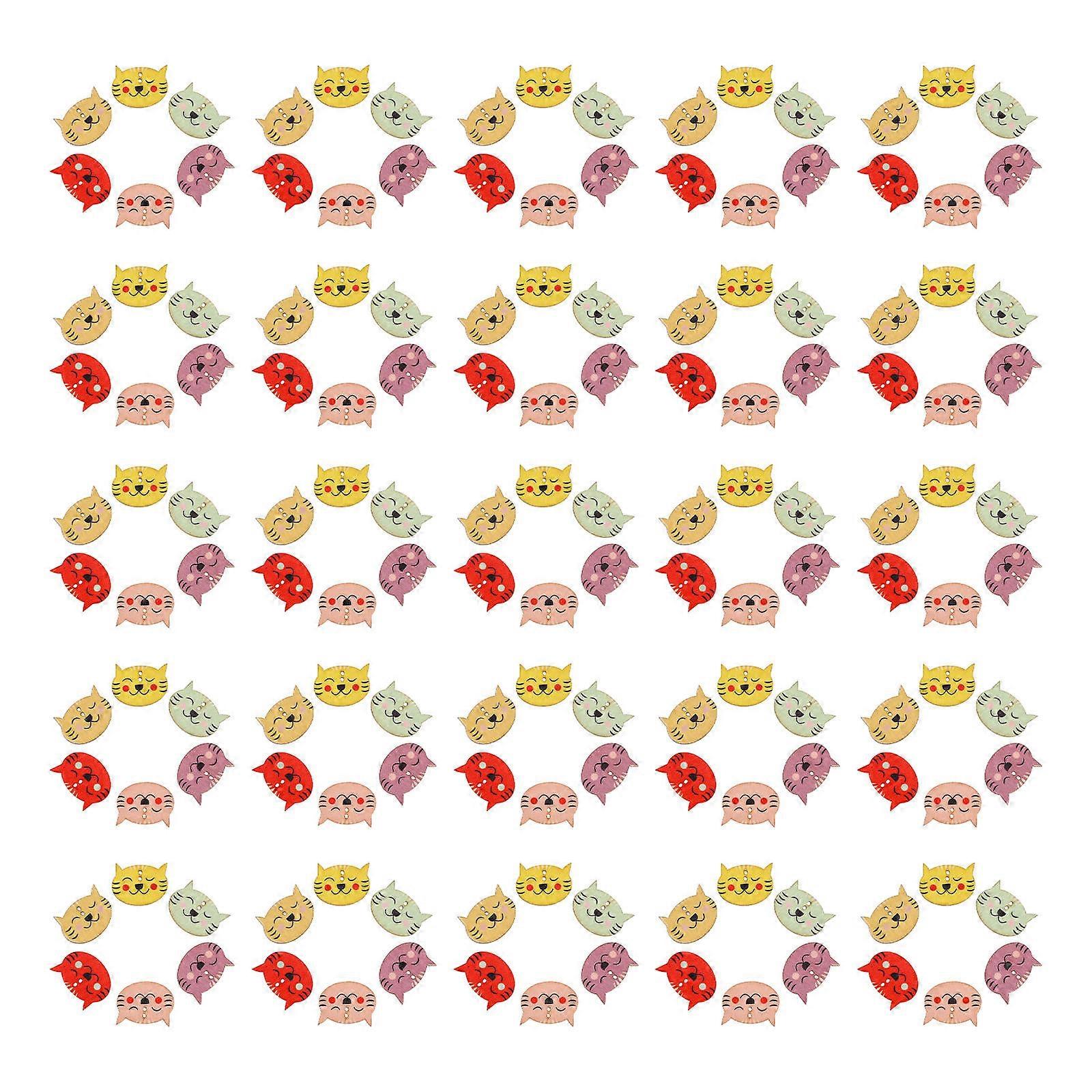 Cat Wooden Clothes Button for DIY Use 100Pcs Assorted Color Kitten Shaped