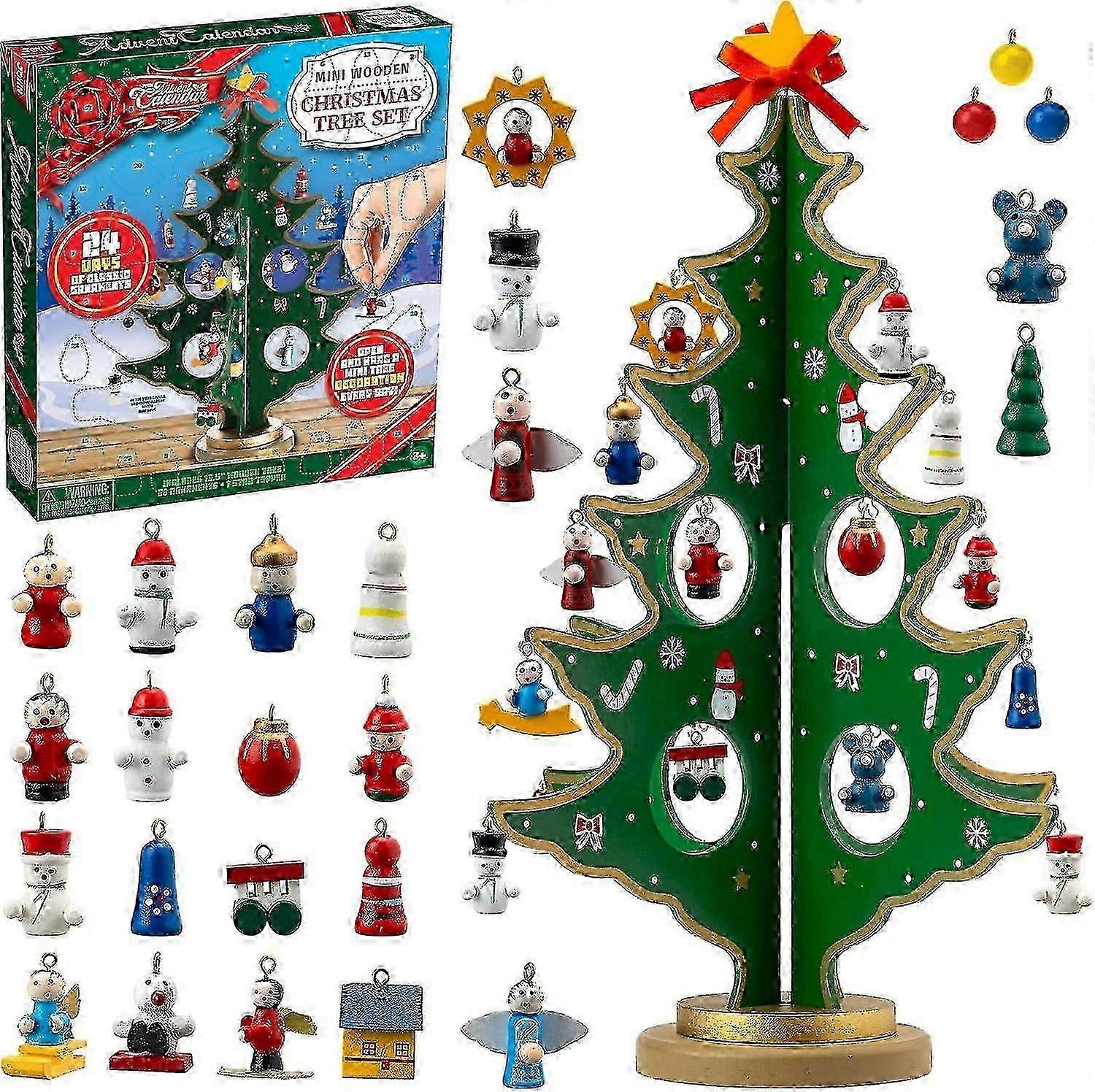 Christmas 24 Days Countdown Advent Calendar With A Tabletop Wooden Christmas Tree And 28 Ornaments Snowman Santa Decorationsr