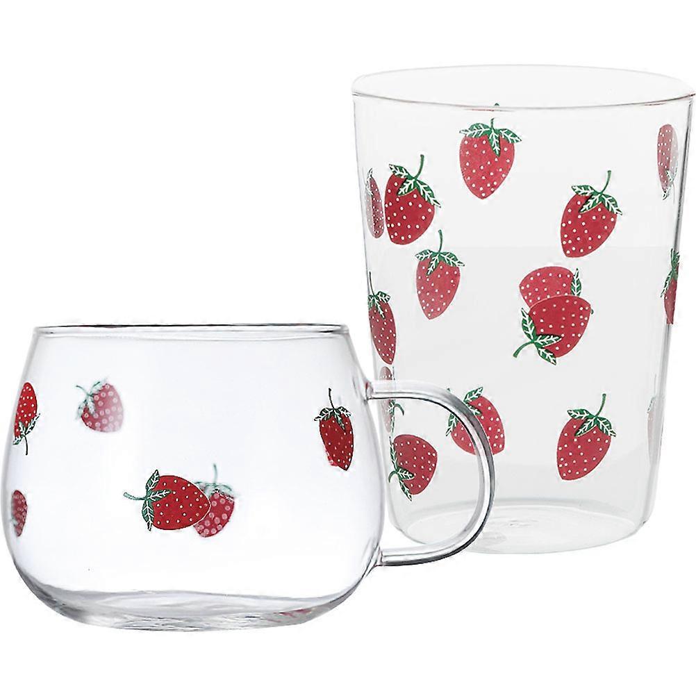 Cylindrical Strawberry Pattern Glass Cups For Multipurpose Use 6Pcs Perfect For Home And Special Occasions Including Birthdays