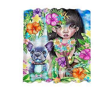 Detské umenie Havajské dievča a jej sprchový záves pre psov