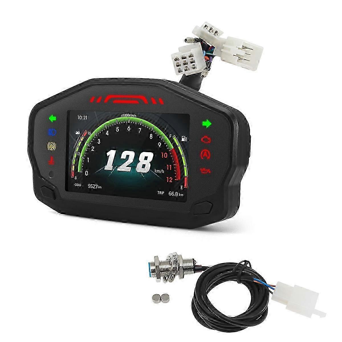 Digital LCD Dashboard Tachometer with 12000rpm Speedometer for 2-4 Cylinder Motorcycles - Universal Fit