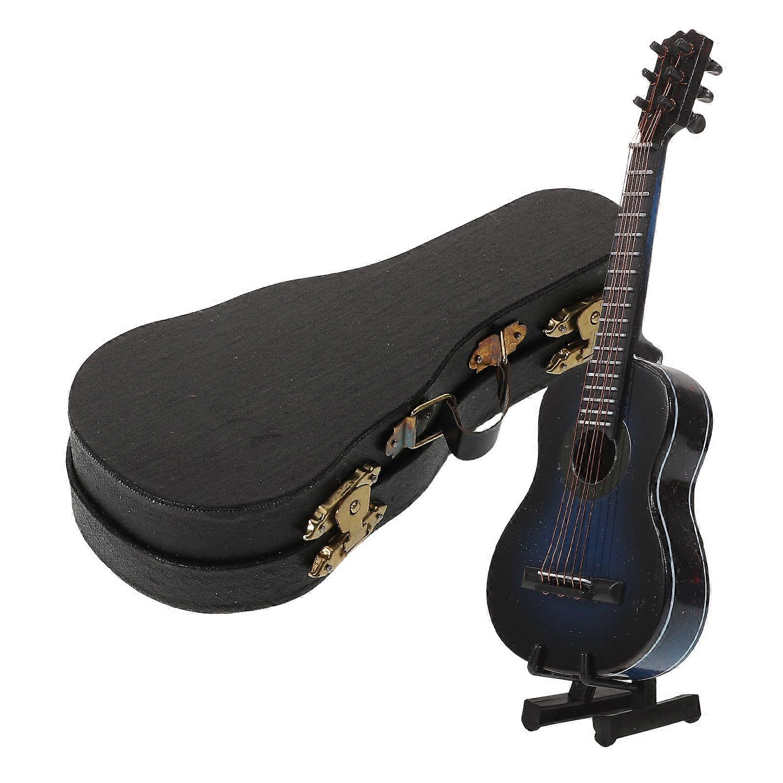 Wooden Miniature Guitar: Mini Musical Instrument Figurines Dollhouse Accessories Guitar Model with Stand and Case Decoration Display Ornament