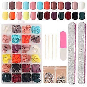 Fashionable Nail Enhancements, Medium Square Shape Solid Color Dark Green Nails For A Chic Matte Finish, Easy To Apply & Remove At Home With Included