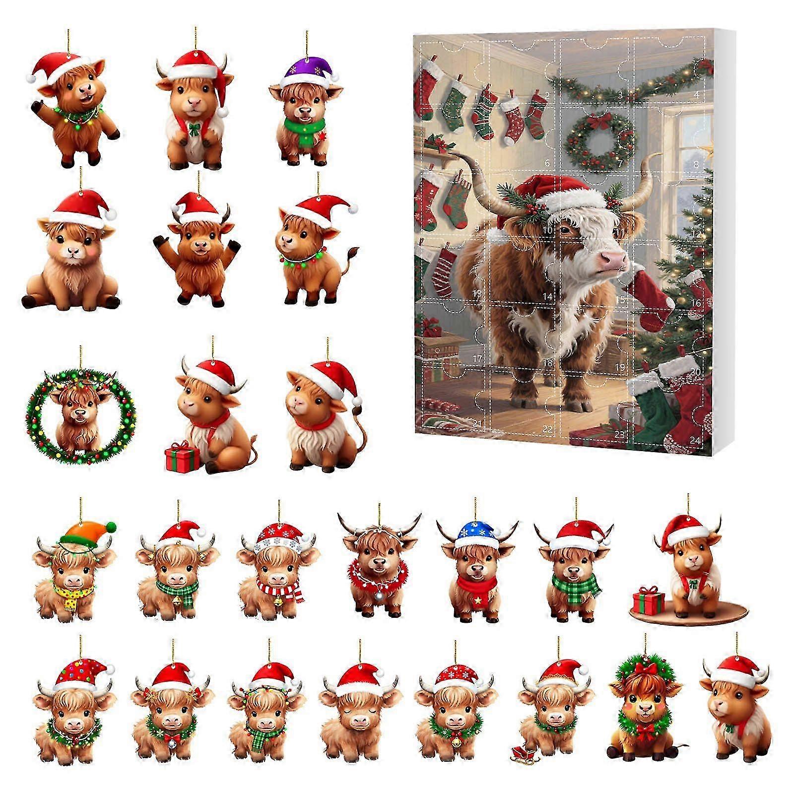 Festive Countdown for Christmas Highland Cow Advent Calendar Decor