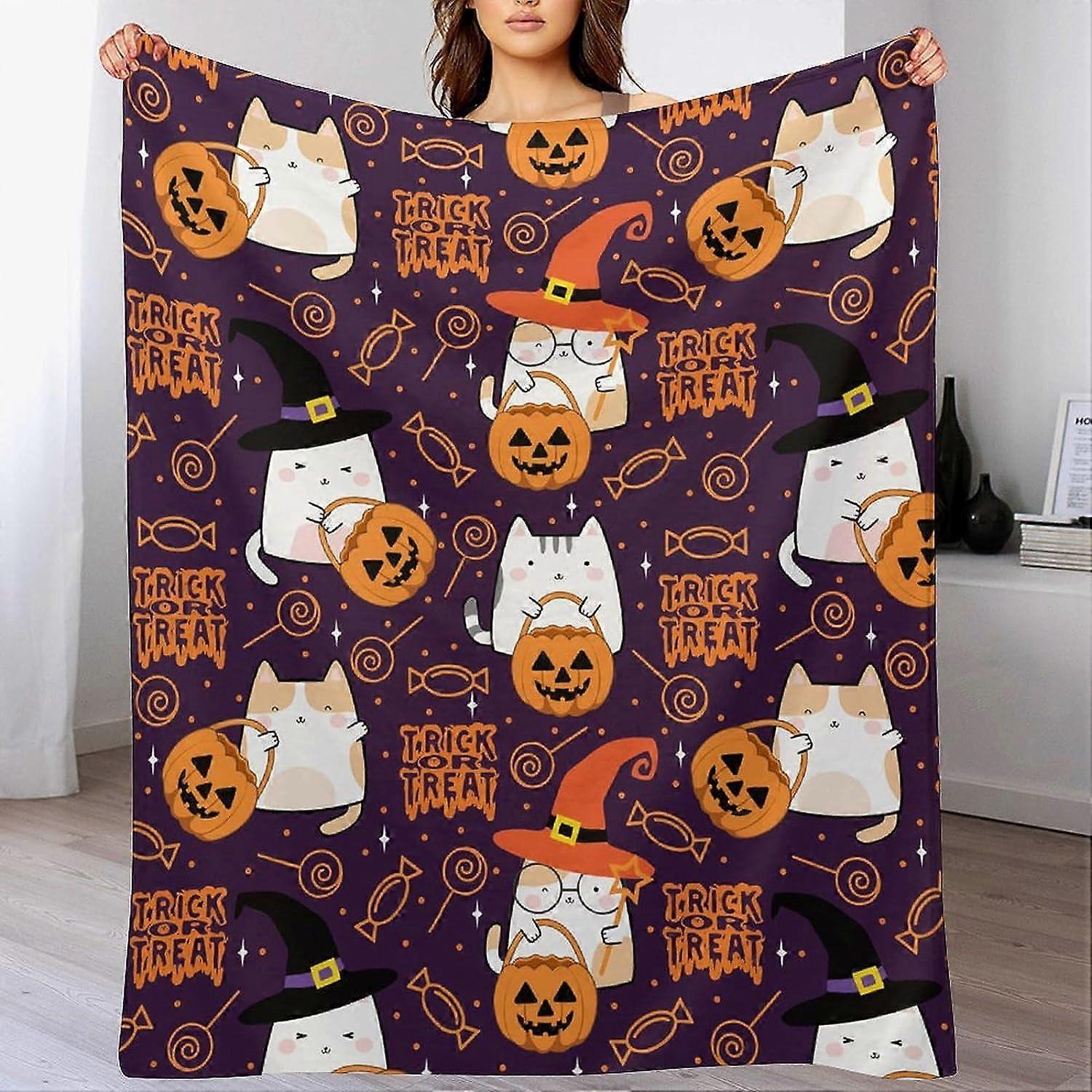 Flannel Fleece Blanket, Soft Warm Plush Throw with Spider Webs, Witch's Hat, Black Bats & Pumpkins Print for Bed, Couch (40*30in, Halloween)