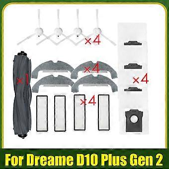 Rubber Brush for Dreame D10 Plus Gen 2 RLD32GD Replace Parts Accessories 4X Side Brush Hepa Filter Mop Cloth Dust Bag