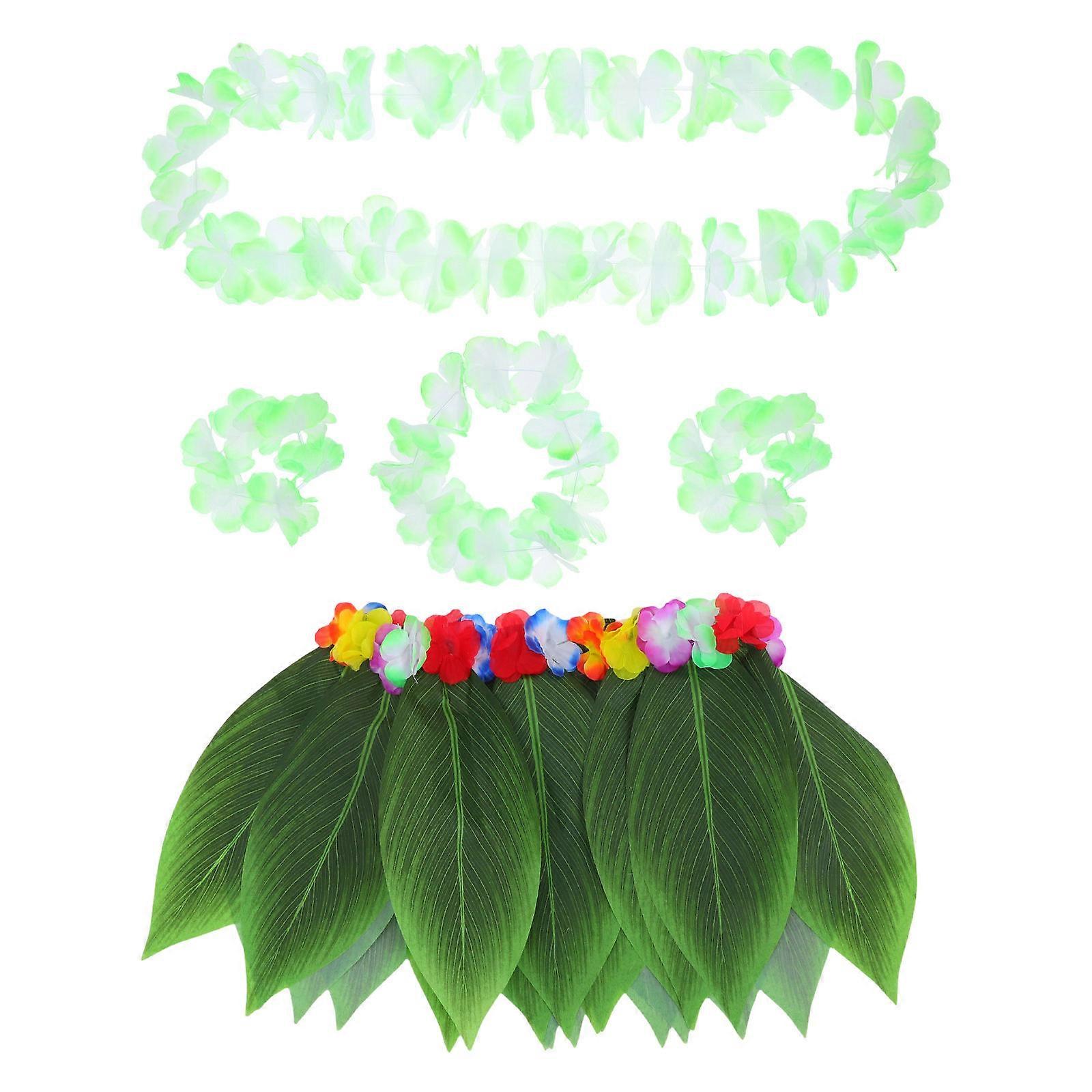 Hawaiian Party Outfit For Women Light Green Grass Skirt And Flower Garland Set Beach Events Photoworthy Design 4Pcs