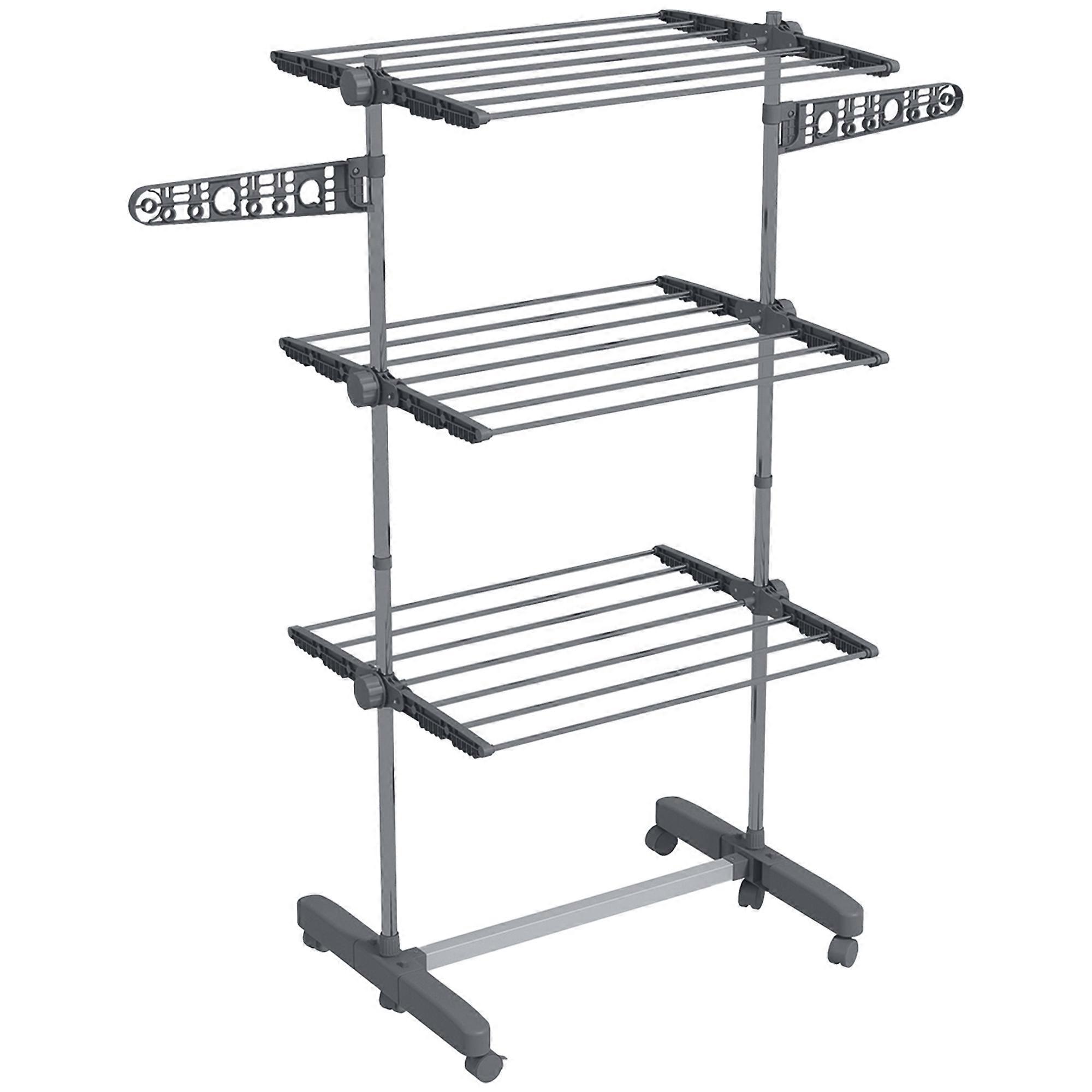 HOMCOM 3 Tier Foldable Clothes Drying Rack Wheels Gray Steel Laundry