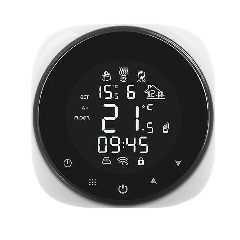of the objectThere are three styles of the wifi thermostat gas boiler thermostat underfloor electric controllerunderfloor water controllerIt is a smart thermostatyou can control the thermostat through your voice with Amazon Alexa and Google Home ,and you can control it from everywhere If your phone has a network1, Beautiful appearance, generous2, Touch the button operation3. Control electric ball valve, electric valve, electric heating valve, solenoid valve, heater, electric heating film, carbon crystal4, Automatic programming mode and manual mode5, Set different working modes by pressing the button6, Relay output7, With temperature calibration function8, With antifreeze function9, Wsing terminal wiring10, Optional time switch machine, 5 + 2 weeks function settings, etc.11, Shell flame retardant material PC + ABS12, Large screen LCD display13, Optional dual temperature dual control functionFeatures:Working voltage: AC200~240V, 50/60HZload current: 3A (water heating), 16A (electric heating)Temperature control accuracy: 0.5CSet temperature range: 5C - 35CTemperature limit range: 5-99 CSelf-consumption power: