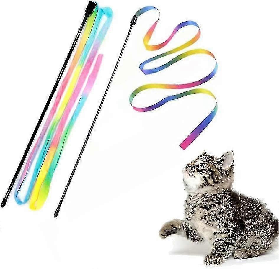 Interactive Cat Rainbow Wand Toys, Interactive Cat Teaser Wand String, Colorful Ribbon Charmer For Kittens - 2 Pcs 26s