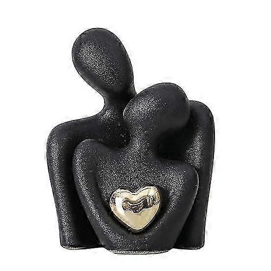 Ceramic Couple Hug Figurine with Golden Love Heart Men Women Embrace Statue Sculpture